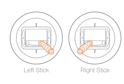 Keep both sticks still for 3 seconds as shown in the left figure to initiate propellers.